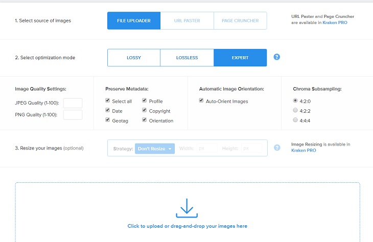 Cũng như trang web Compressnow, Kraken cũng hỗ trợ người dùng có thể giảm dung lượng ảnh, mà không làm ảnh hưởng đến chất lượng của ảnh.