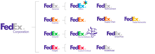 FedEx chính là một ví dụ tuyệt vời cho thương hiệu áp dụng mô hình cấu trúc Branded house. FedEx Express, Ground, Freight đều là những sub-brands nằm trong doanh nghiệp. Một mô hình được xây dựng tương đối mạch lạc và rất nhiều cơ hội mở rộng trong tương lai.