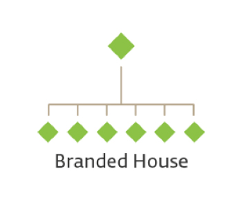 Một cấu trúc thương hiệu hoàn toàn trái ngược với Branded House, chính là House of Brands. Theo mô hình này, thì các sub-brands là các thương hiệu được quảng bá chính thay vì brand của cả doanh nghiệp.