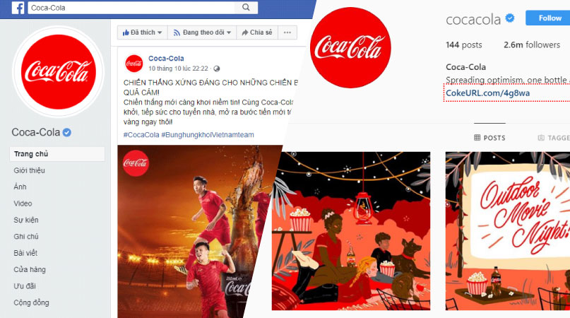 Hãy nhìn ví dụ ở Coca-Cola, ta có thể thấy sự nhất quán xuyên suốt của tông màu đỏ trên các kênh truyền thông mà họ sử dụng: từ Facebook, Instagram cho tới LinkedIn.