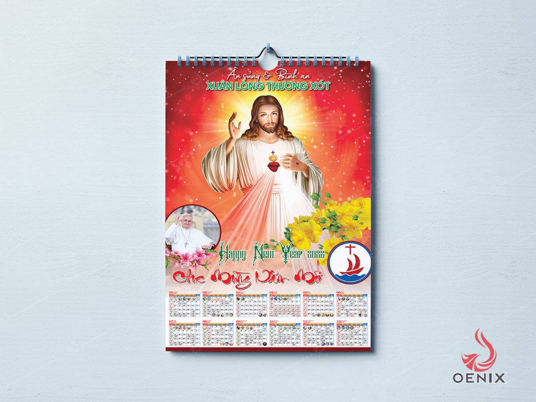 Oenix xin phép chia sẻ file in lịch treo tường Công giáo với chủ đề: Xuân Lòng Chúa Thương Xót.