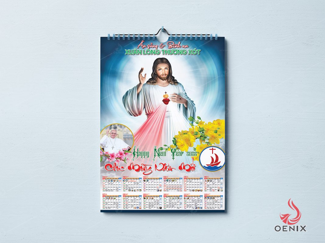 Oenix xin phép chia sẻ file in lịch treo tường Công giáo với chủ đề: Xuân Lòng Chúa Thương Xót.