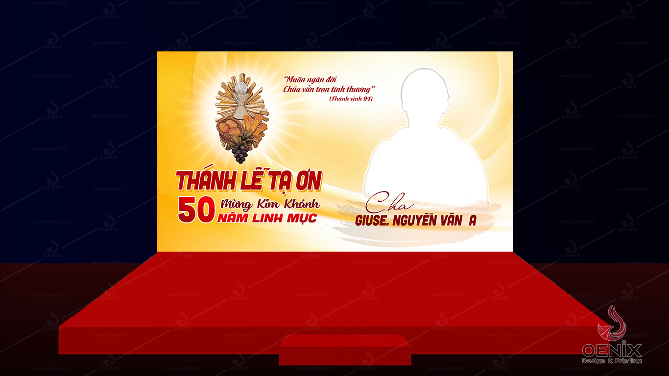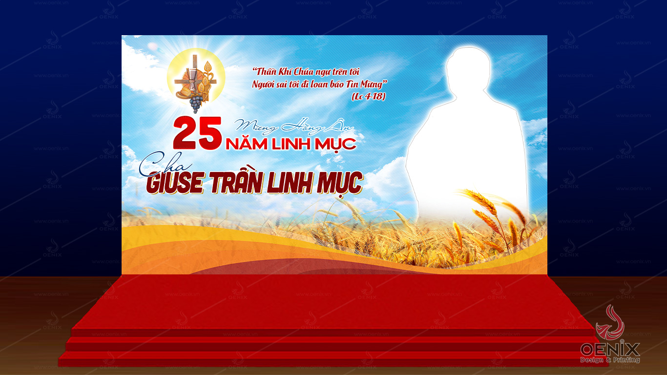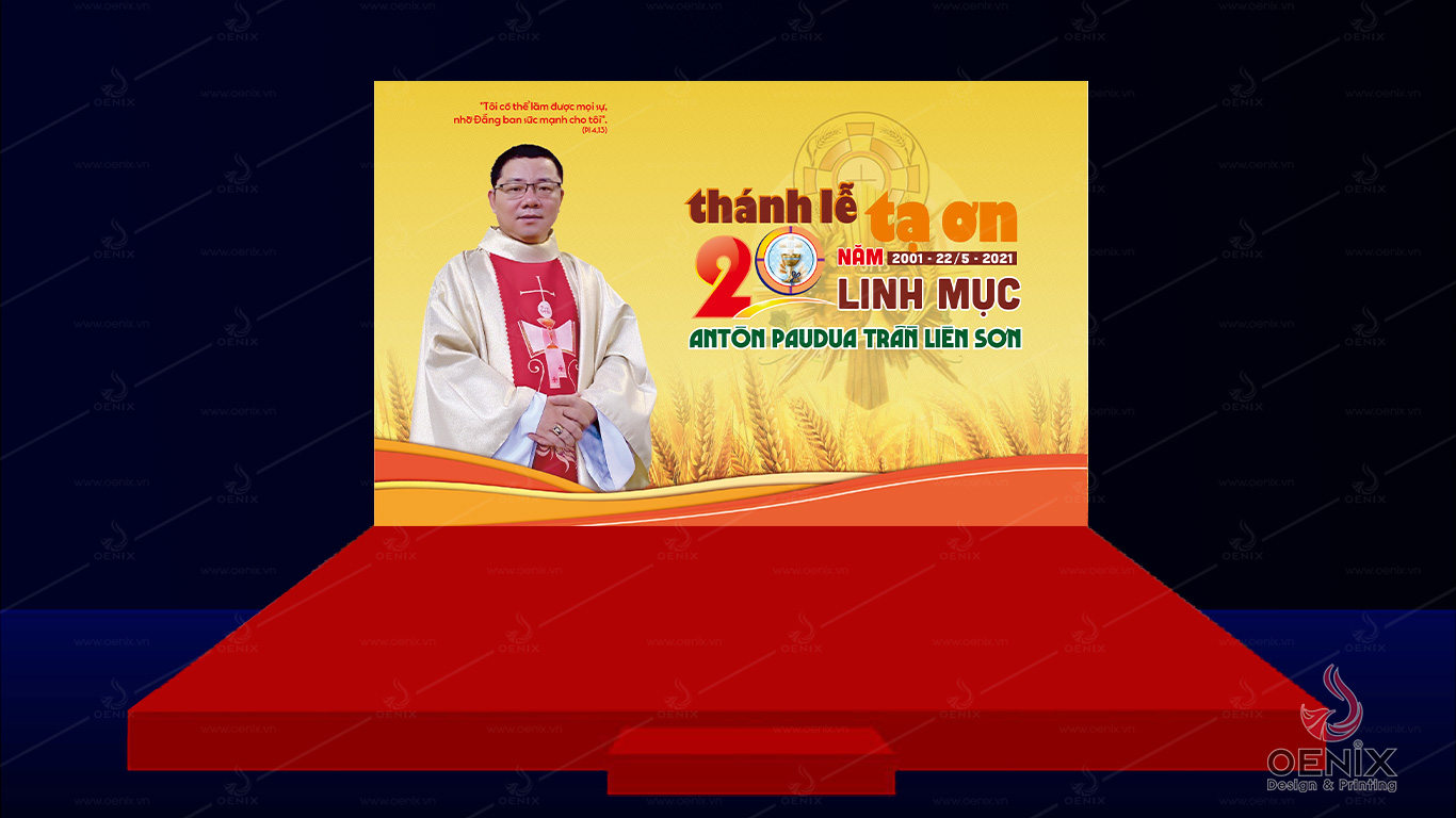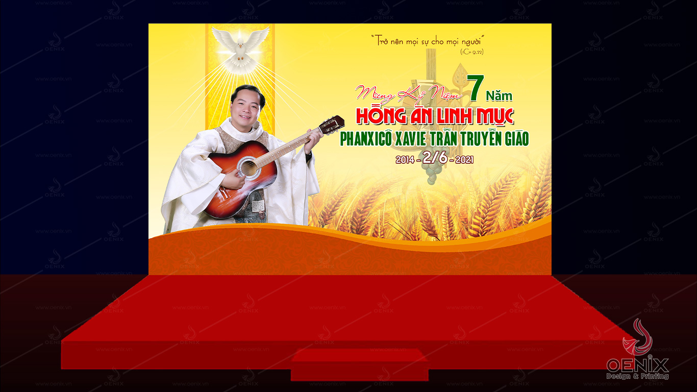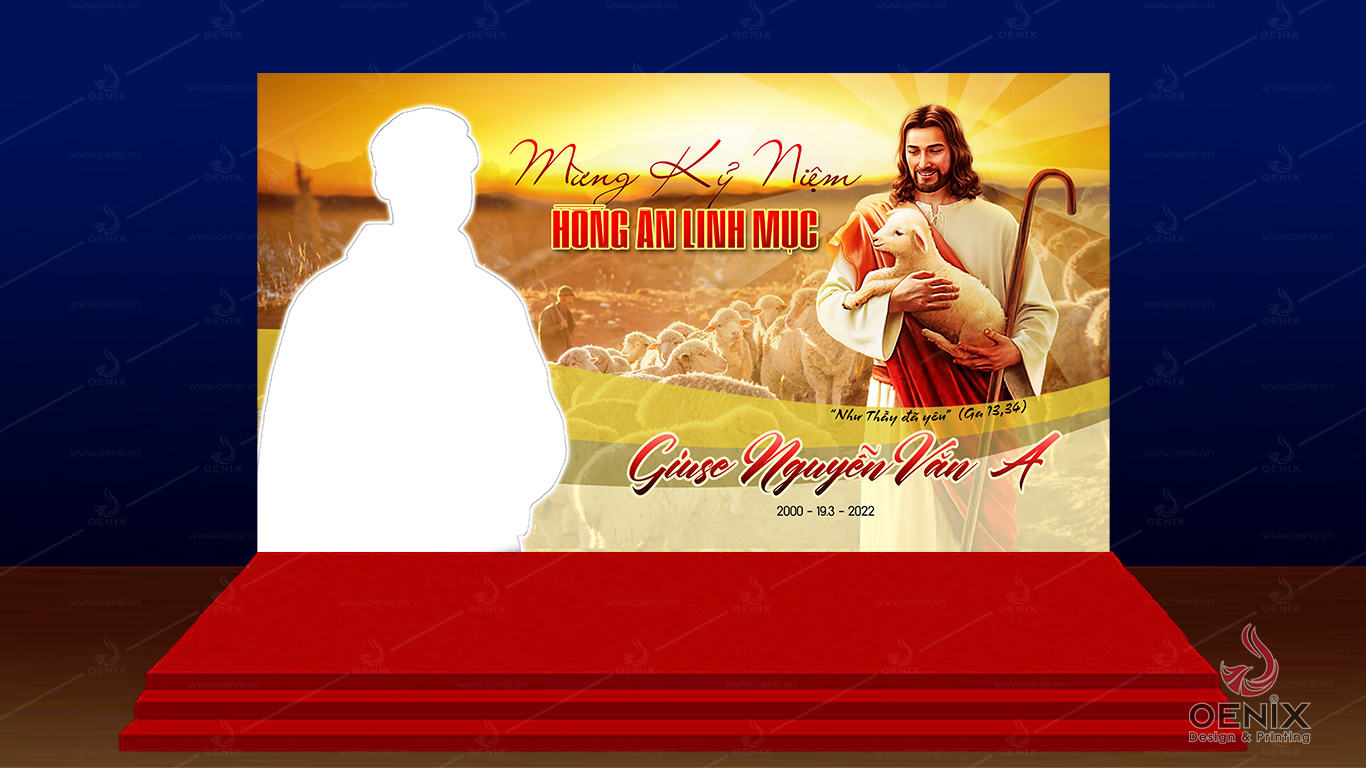 Mời bạn cùng xem qua thiết kế backdrop lễ kỷ niệm thụ phong linh mục của mình nhé!