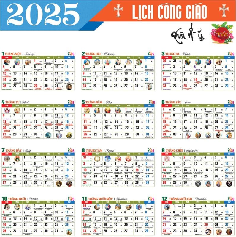 Lịch Công giáo năm 2025 là một trong những món quà tuyệt vời mà bạn có thể chia sẻ với những người đến thăm nhà thờ và khi tham gia các sự kiện cộng đồng. Ngoài ra, đây cũng là một món quà Tết tuyệt vời cho họ hàng, người thân, bạn bè hay đồng nghiệp.