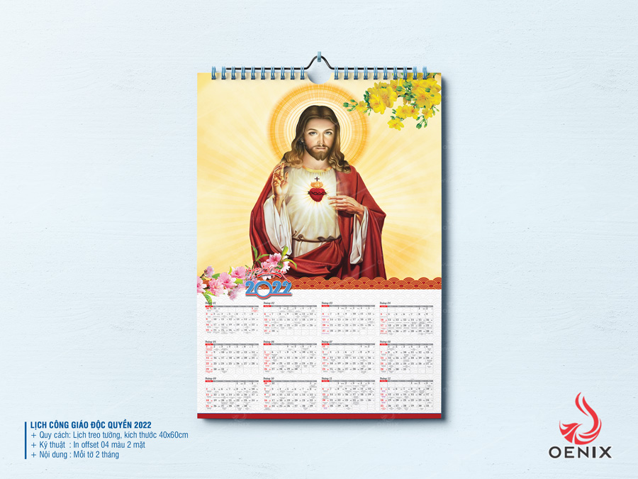 Oenix xin phép chia sẻ file in lịch treo tường Công giáo 2022