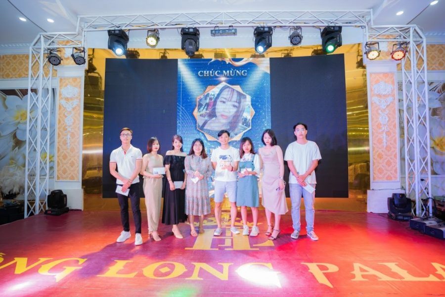 Các thành viên trong công ty cùng giao lưu tiết mục văn nghệ, cùng hát hoặc cùng biểu diễn sở trường của mình. MC mời các thành viên cùng di chuyển lên sân khấu chụp hình lưu niệm trước khi kết thúc chương trình Gala dinner 2022.