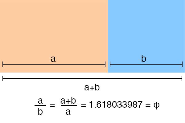 Tỉ lệ vàng được dựa trên con số Phi (φ) = 1.61803398874… do nhà toán học người Ý Fibonacci đề xuất. Phi (φ) là tủ lệ giữa chuỗi số 1, 1, 2, 3, 5, 8, 13, 21 trong đó số tiếp theo trong dãy số bằng tổng 2 số trước đó. Ví dụ 1+1=2, 1+2=3, 2+3=5… Khi chúng ta chia tỉ lệ các số liên tiếp đó ví dụ 5/3 = 1.67 và 21/13 = 1.615. Tỉ lệ này tiệm cận tới số φ (1.618).