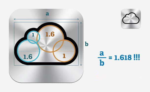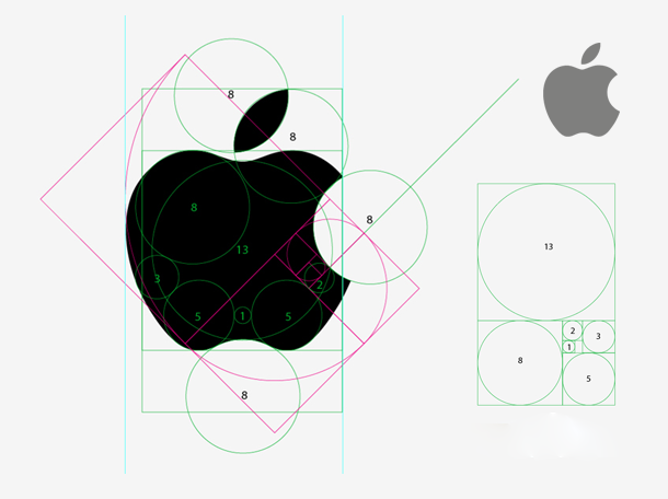 Đường kính các vòng tròn tạo ra cấu trúc logo Apple có tỉ lệ theo chuỗi Fibonacci (tỉ lệ vàng)