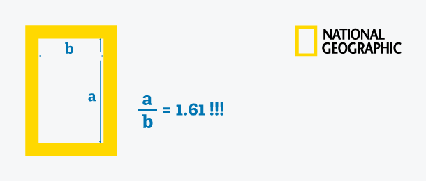 Bạn có nhớ hình chữ nhật trong logo của kênh National Geographic? Bạn đã bao giờ tự hỏi tại sao hình logo đơn giản như vậy lại có sự ấn tượng cao không? Câu trả lời là Tỉ lệ vàng. Chiều dài và chiều rộng của hình chữ nhật có tỉ lệ 1.61. Nó hoàn toàn phù hợp với khẩu hiệu của chương trình là “thúc giục mọi người quan tâm về hành tinh của chúng ta”