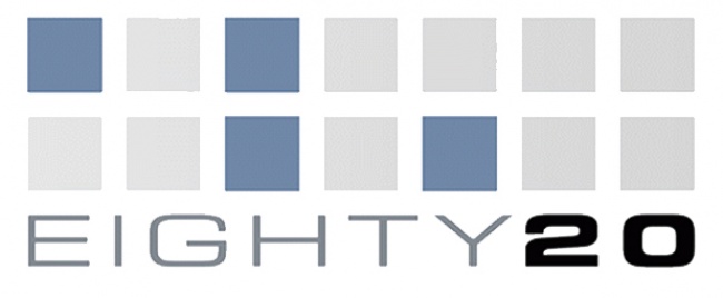Eighty 20 là công ty tư vấn quy mô nhỏ. Nhiều người cho rằng hình ảnh logo gần như không ăn nhập với cái tên của công ty. Tuy nhiên, nếu bạn tưởng tượng những hình vuông sẫm màu là số1 và những hình vuông sáng màu là số0, từ đó chúng ta có dãy nhị phân: 1010000 (dãy trên) và 0010100 (dãy dưới). Đem mã hóa hai dòng số này, nó được hiểu là 80 và 20 cũng chính là tên công ty.
